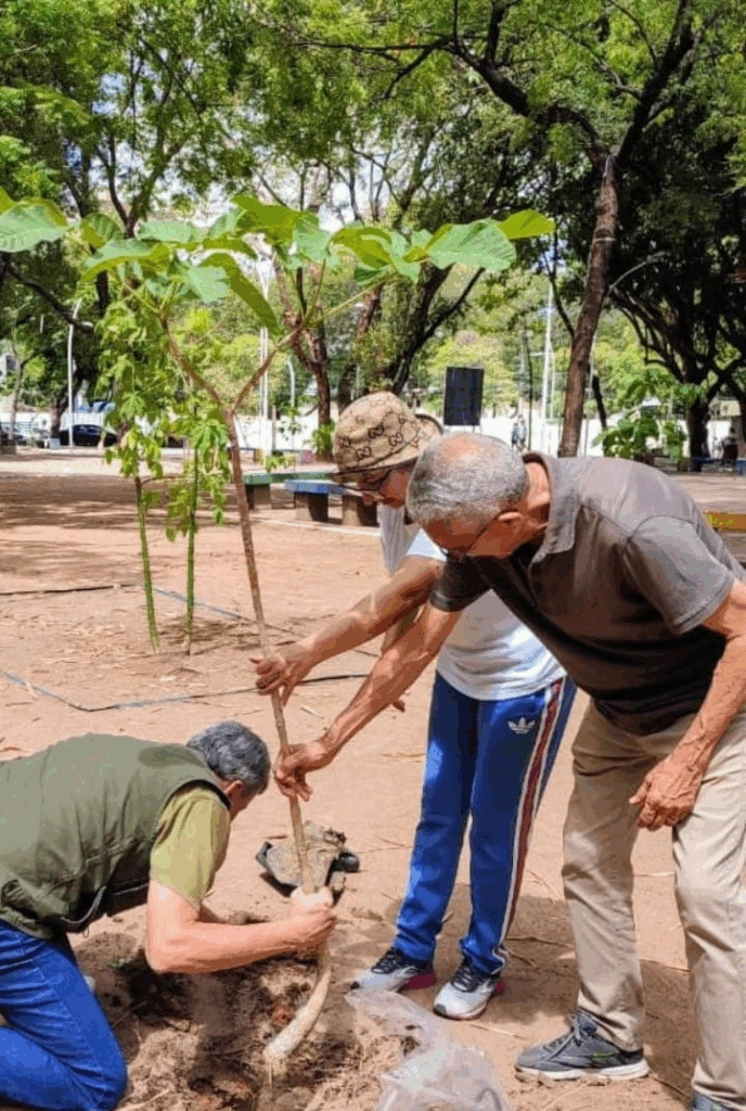 Ipês rosa, ipês lixa, mungubas, resendás e xixás. 30 árvores plantadas para compensar o CO2 emitido pelo XII ENCONTRO INTERCONTINENTAL SOBRE A NATUREZA e palestra na abertura.